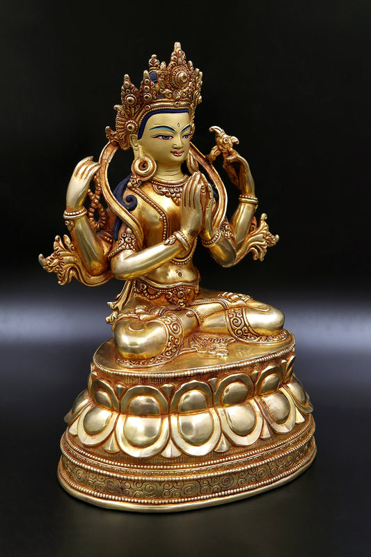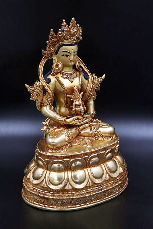 Tibetan Gold Plated Aparmita Statue from Nepal 10"