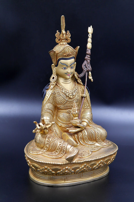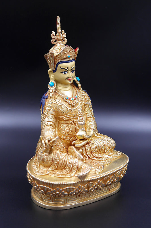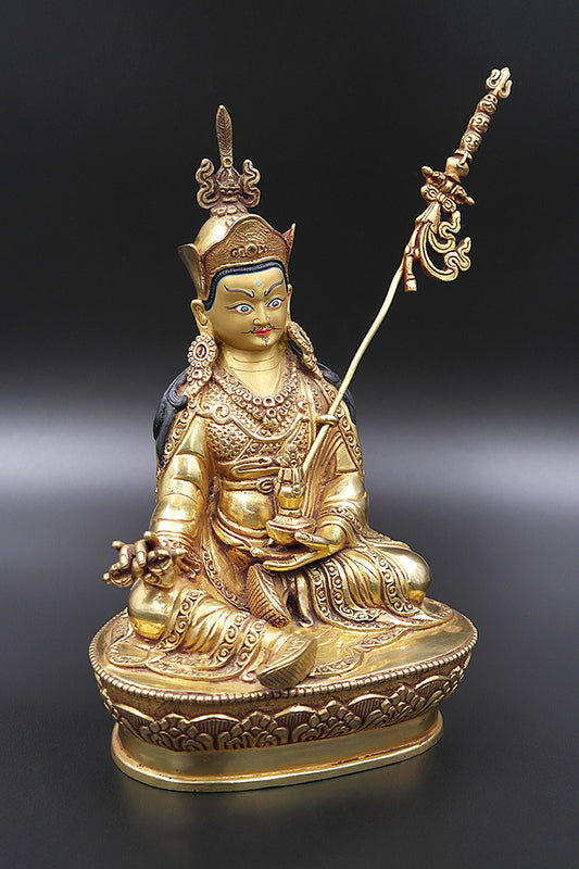 Tibetan Guru Rinpoche Padmasambhava Gold plated Statue 8"