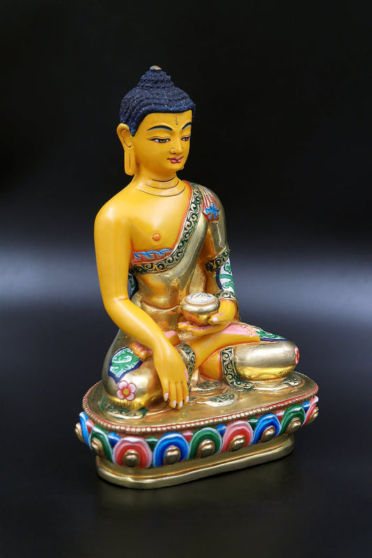 Color Painted and Gold Plated Shakyamuni Buddha Statue 6"