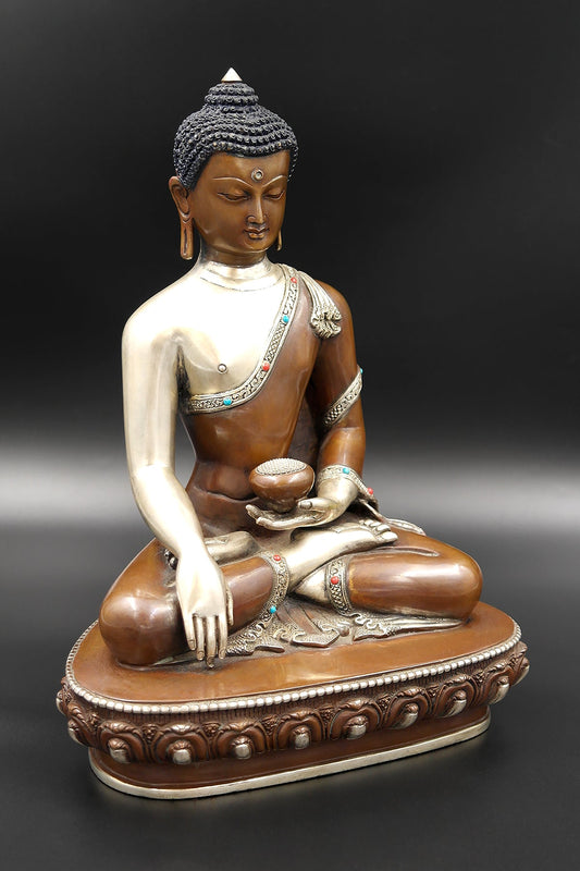 Classic Copper and Silver Shakyamuni Buddha Statue, 9"