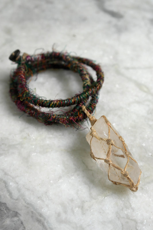 Clear Crystal Stone Pendant Necklace with Silk Cord