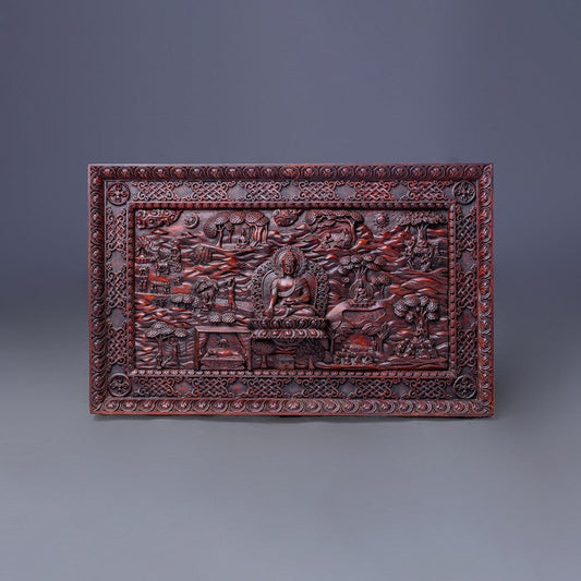 Buddha`s life carved Wooden Thangka Wall Art Décor
