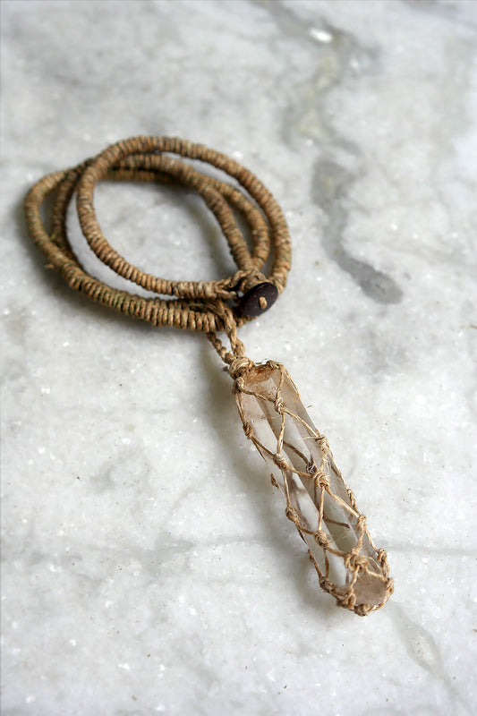 Crystal Stone Pendant Necklace with Hemp Cord