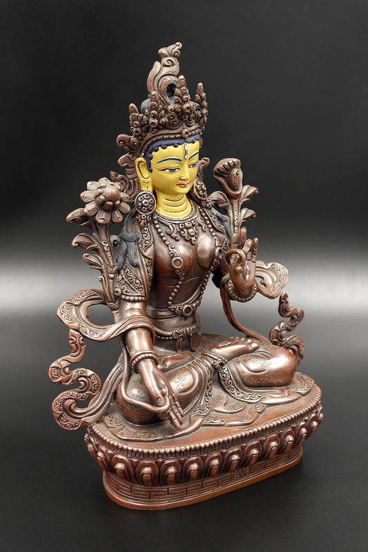 Copper Oxidized Tibetan White Tara Statue 8"