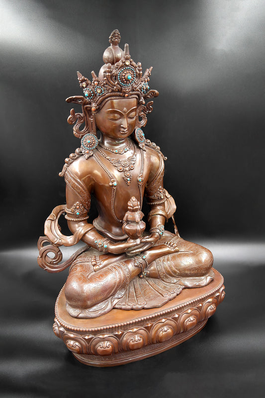 Copper Oxidized Tibetan Buddhist Aparmita Statue 18"