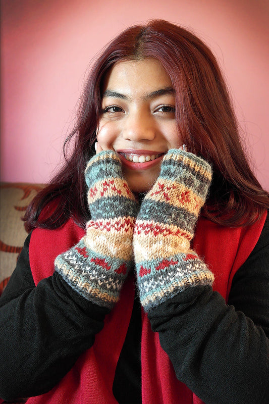 Cream, grey and maroon mixed color woolen hand warmers
