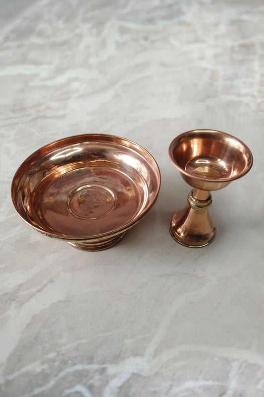 Copper Serkym Set, Hand Made Tibetan Buddhist Serkyem Copper Set 6"
