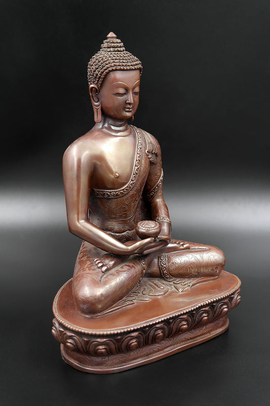 Copper Oxidized Amitabh Buddha Statue, 8"