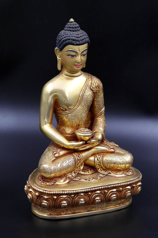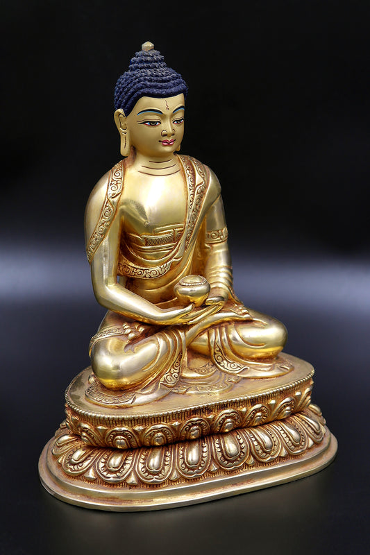 Elegant hand carved Gold Plated Amitabh Buddha Statue 9"