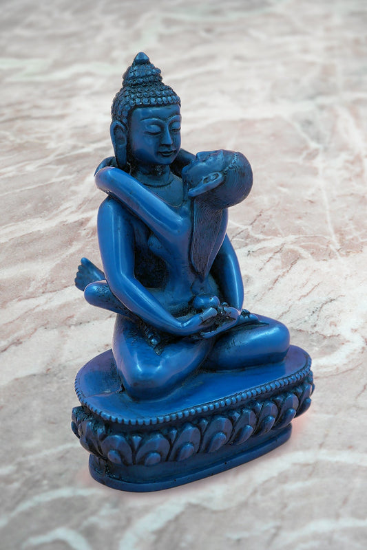 Lapis lazuli tone Buddha Shakti Yab Yum Resin Statue 5"