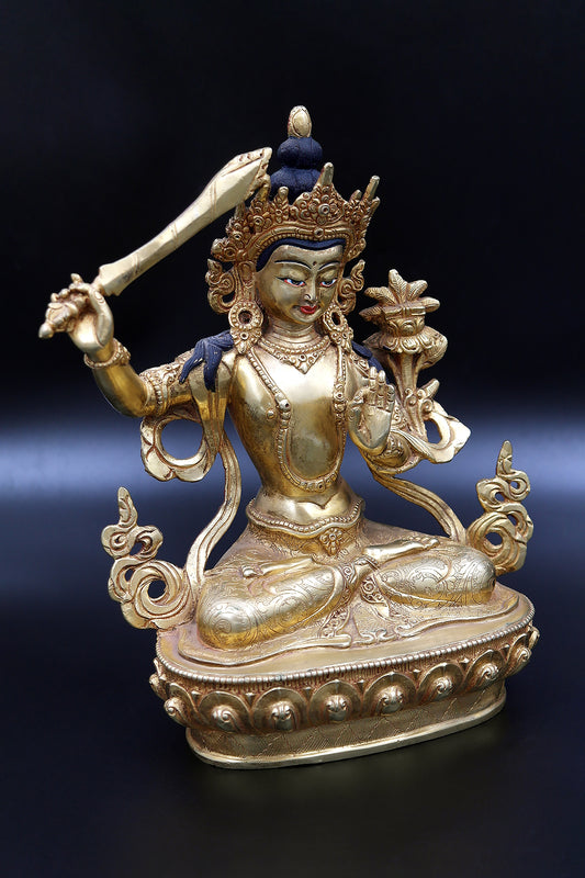 Partly Gold Plated Tibetan Buddhist Manjushree Statue from Nepal 9"