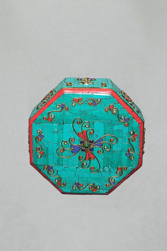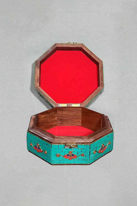 Octagonal shaped Semi Precious Gemstones inlaid Jewelry box