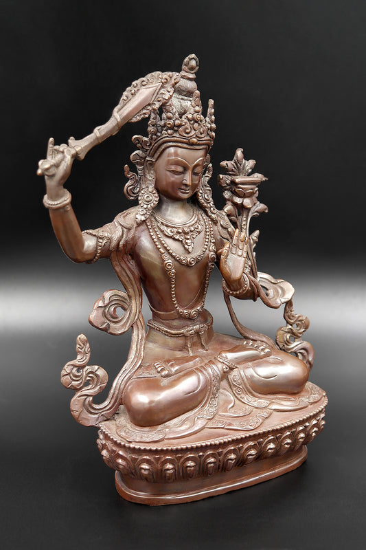 Copper Oxidized Tibetan Manjushree Statue from Nepal 8"