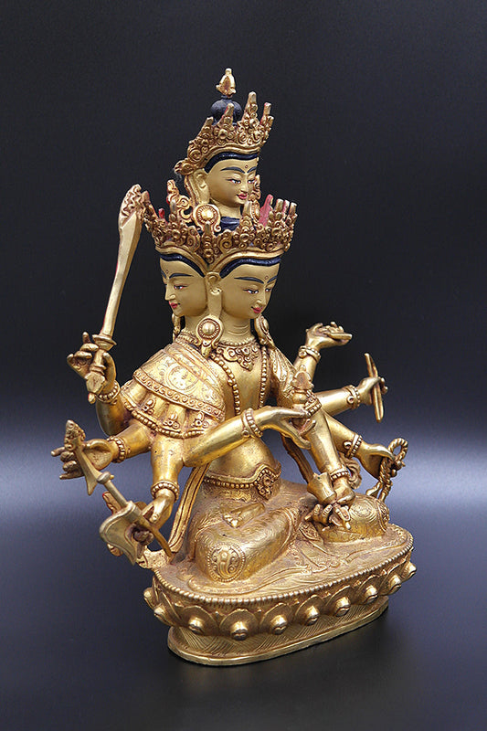 Fully Gold Plated Maha Manjushree Statue, 10"