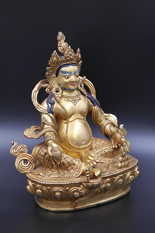 Fully Gold Plated Zambala Statue, Handmade Kuber Statue in Nepal 9"
