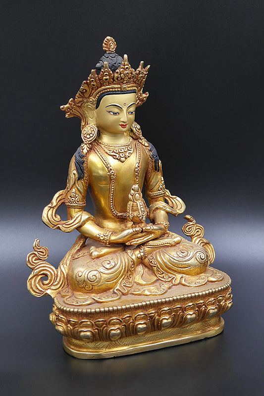 Fully Gold Plated Aparmita Buddha Statue, Handmade in Nepal 9"