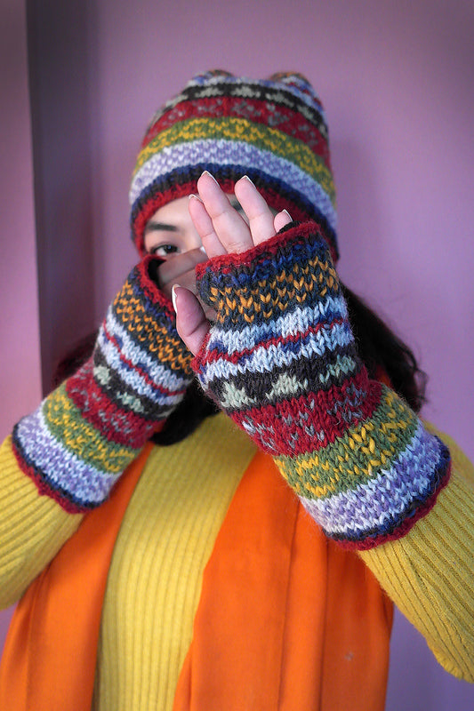 Hand Knitted Red green blue mixed Colored Woolen Hand Warmers
