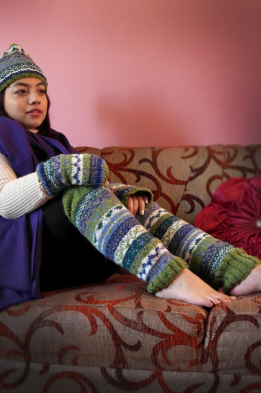 Olive Green, blue color mixed hand knitted Woolen Hand Warmers Women