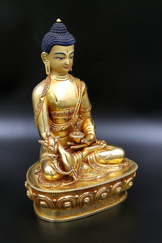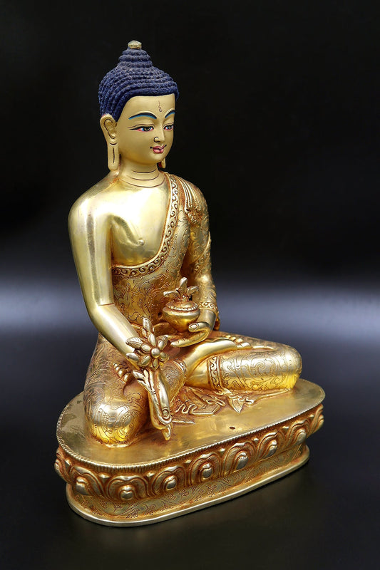 Fully plated Golden Medicine Buddha Statue from Nepal 9"