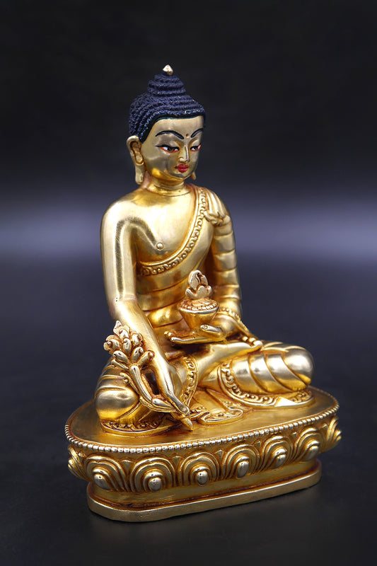 Handmade Gold Plated Medicine Buddha Statue 5.5"
