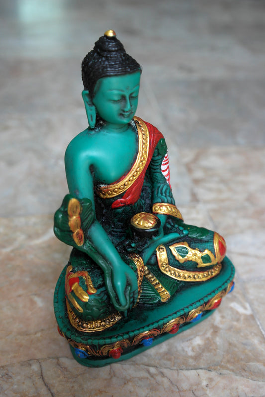 Turquoise Toned Tibetan Buddhist Medicine Buddha Statue, 4"
