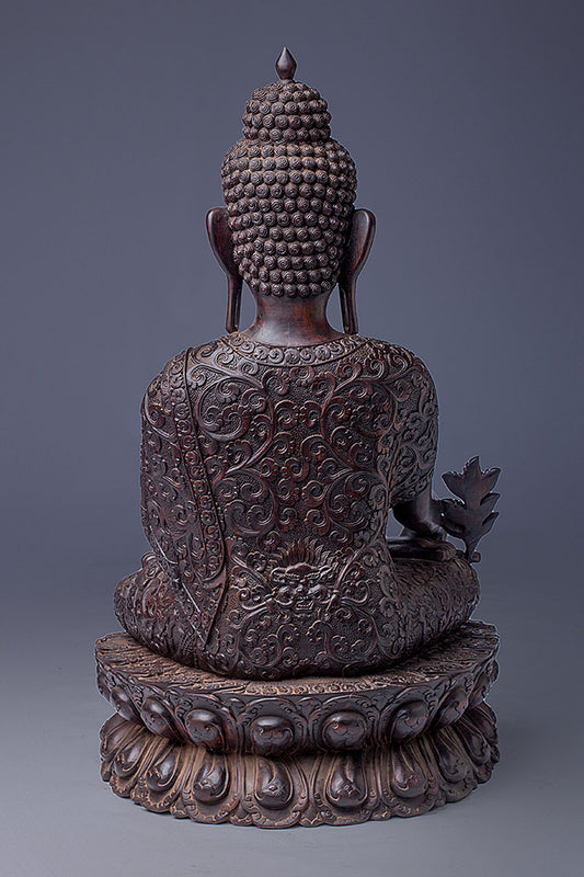 Masterpiece Medicine Buddha Wooden Statue, Healing buddha statue 40"