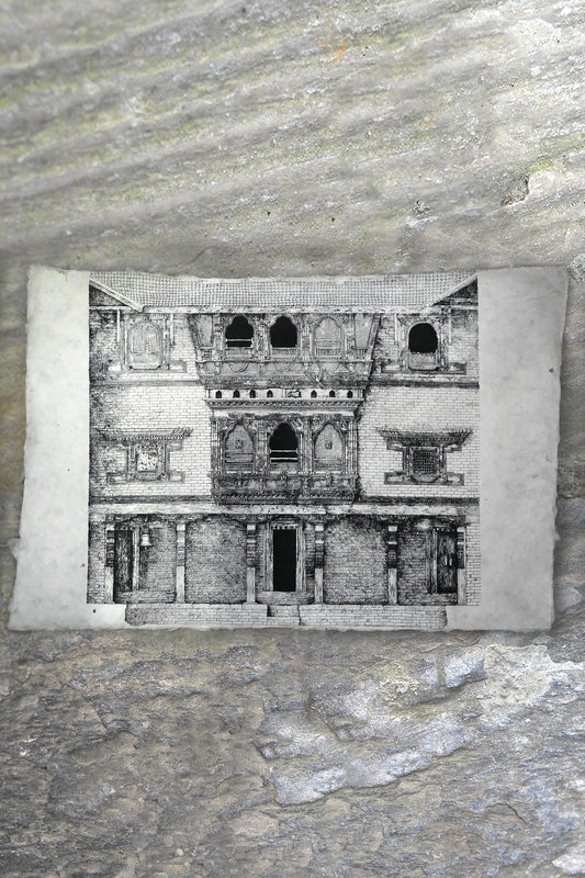 Handmade Lokta Paper Poster of Courtyard Elevation of Kuthu Math, Bhaktapur