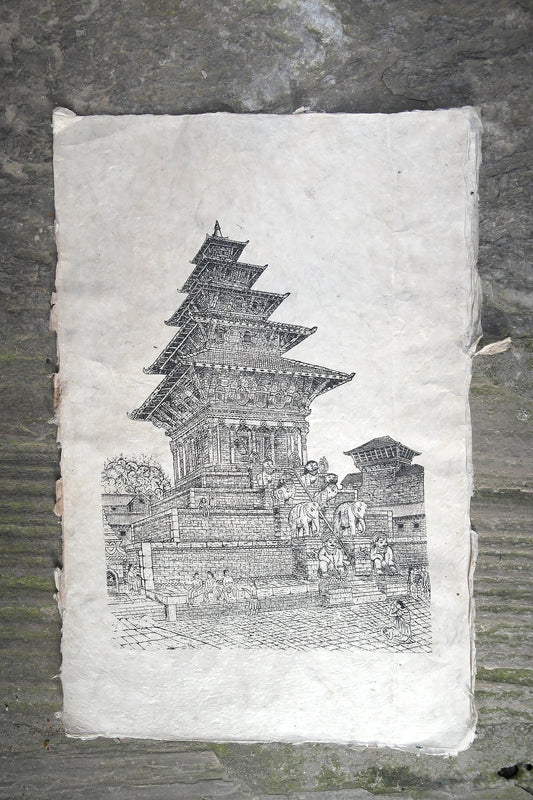 Poster of Nyatapole Temple Bhaktapur, Lokta Paper poster of five tiered temple