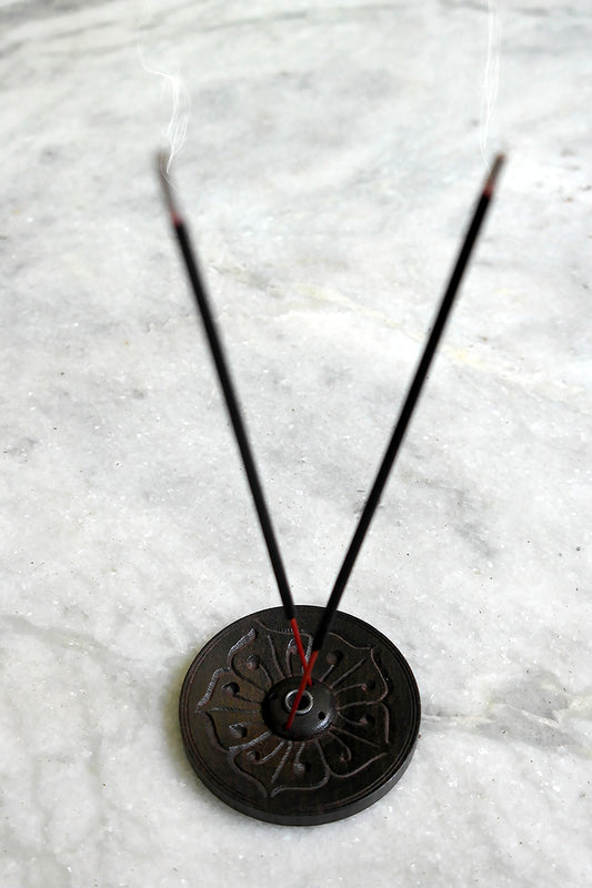 Flower Design Wooden Tibetan Incense Burner, Hand Carved Incense Holder