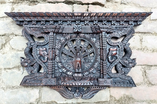 Traditional Handcrafted Wooden Peacock Window with Dragon details