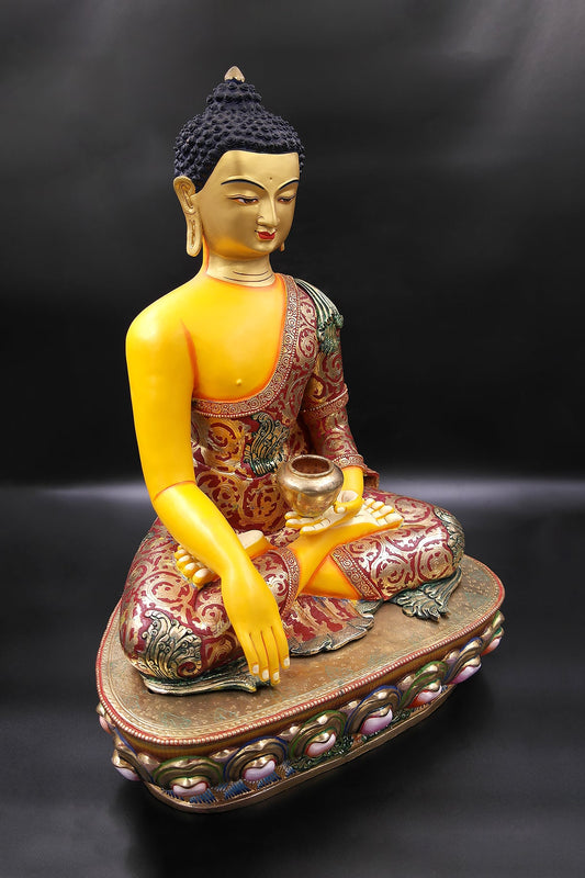 Colorful and Gold Plated Shakyamuni Buddha Statue 19"