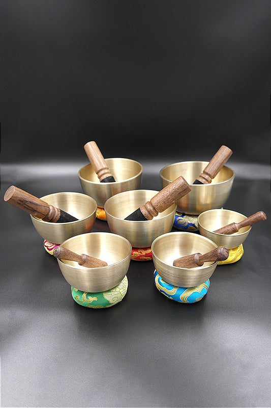 Sets of 7 Meditation Singing Bowls with seven chakra symbols 3"-5"