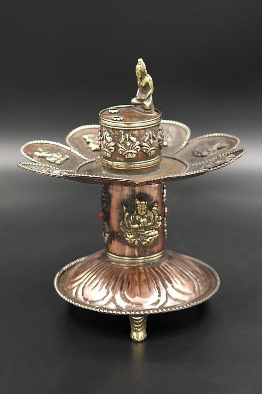 5 in 1 Copper Tibetan Prayer Wheel cum Incense Burner