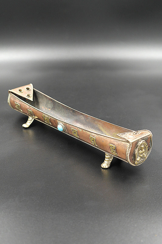 Tibetan Buddhist Mantra Copper & Brass Incense Burner 7"
