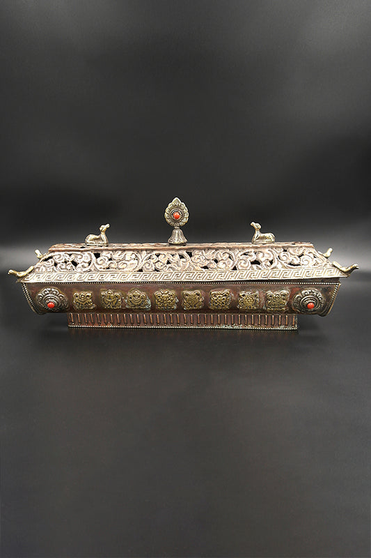 Turquoise Inlaid Tibetan Deer & Lucky 8-Signs Incense Burner