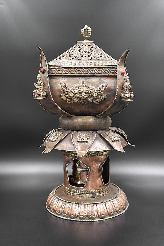 Potala Gate Design Prayer wheel with Incense Burner at top