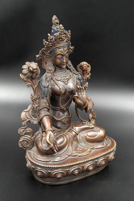 Antique looked Gold Tone Tibetan Buddhist White Tara Statue from Nepal 9"