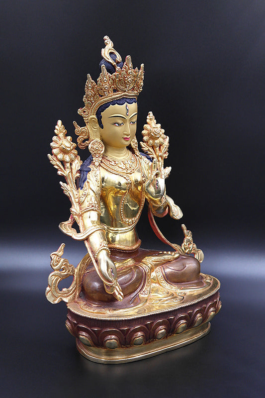 Partly Gold Plated Tibetan White Tara Statue 13"