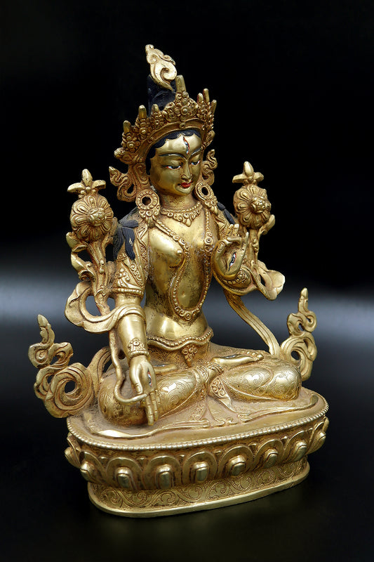 White Tara Statue, fully gold plated and hand carved Tara Statue 6"