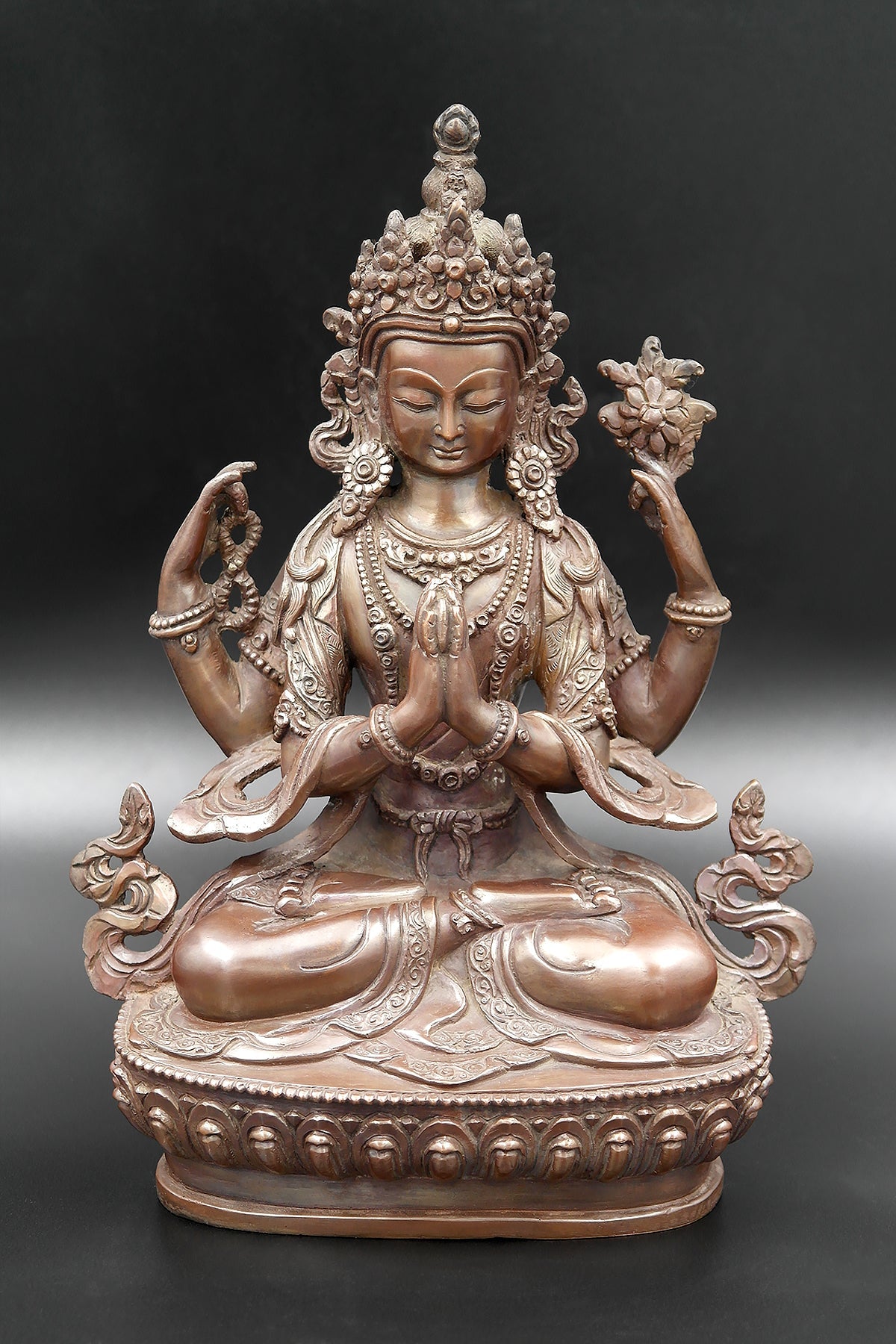 Copper Oxidized Chenrezig Statue 8"