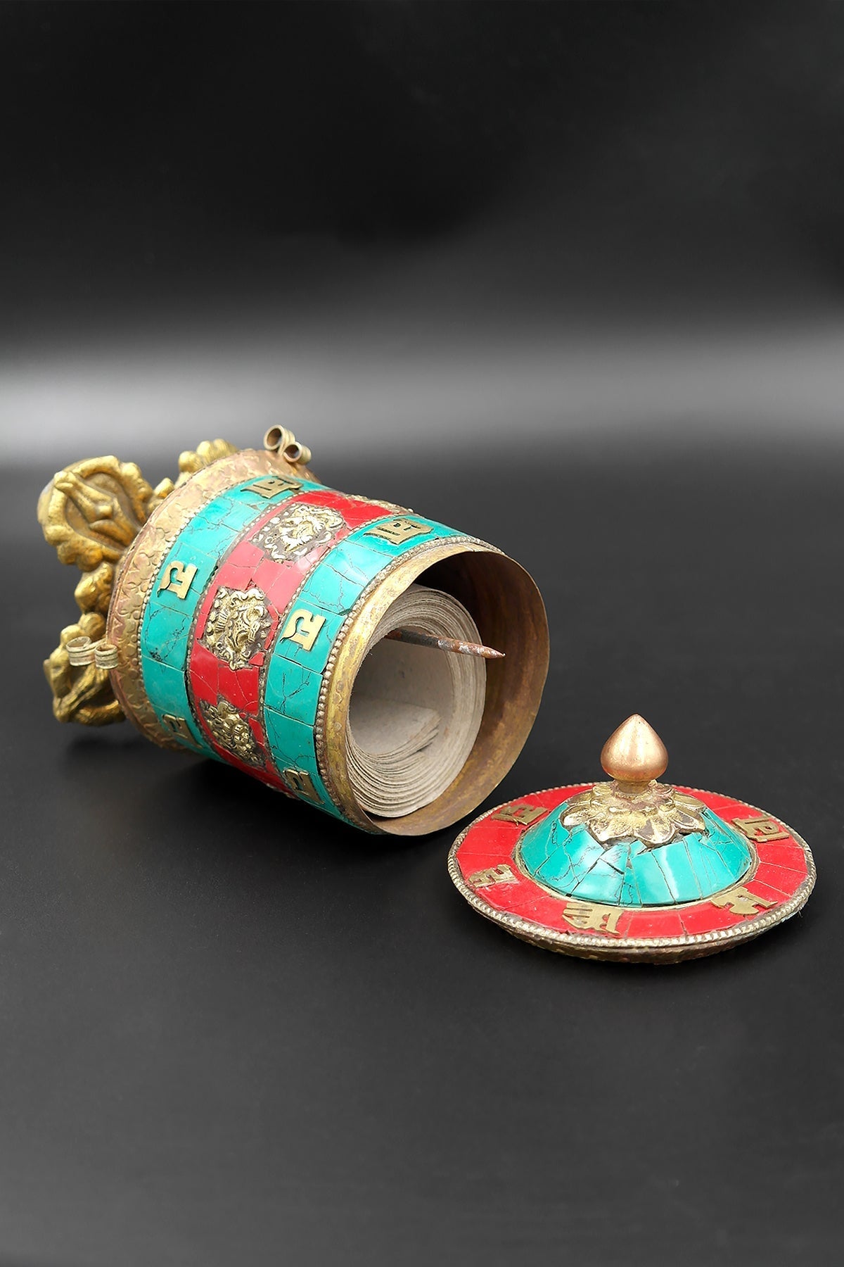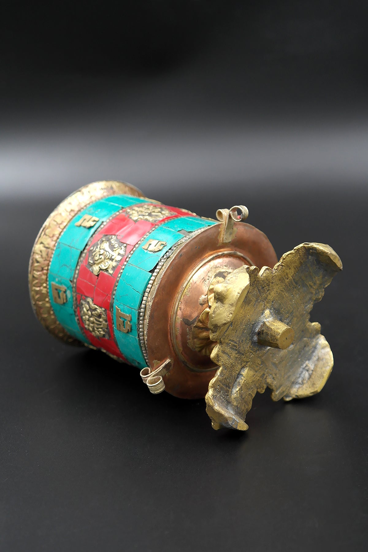 The combination of coral and turquoise not only enhances its aesthetic appeal but also adds energetic properties believed to promote healing and balance. Its vibrant colors and meaningful symbols will inspire tranquility and reflection in your environment. Incorporate this beautiful prayer wheel into your daily routine to cultivate mindfulness and intention.