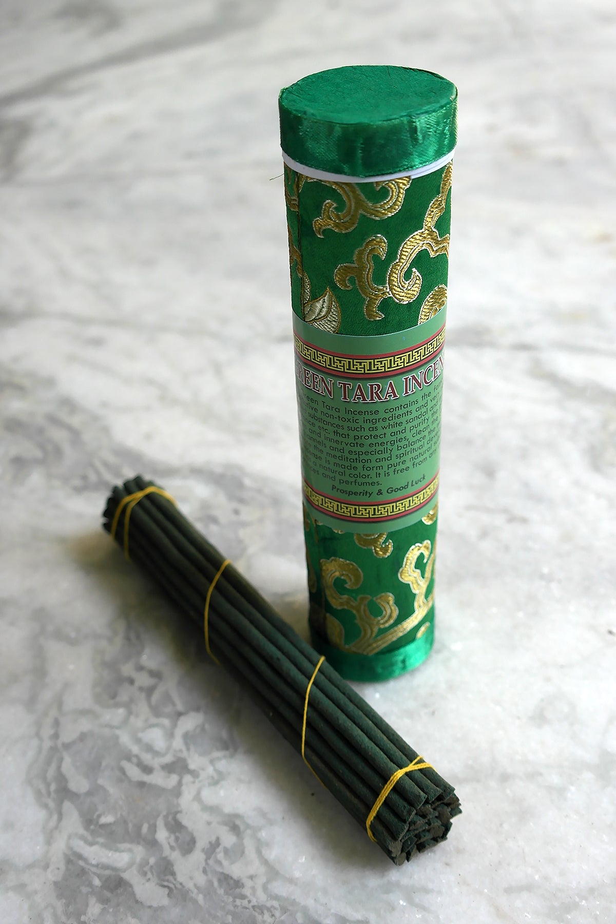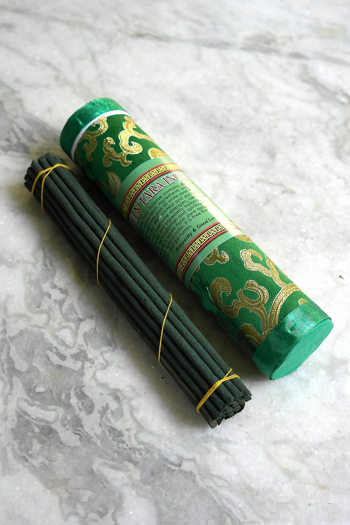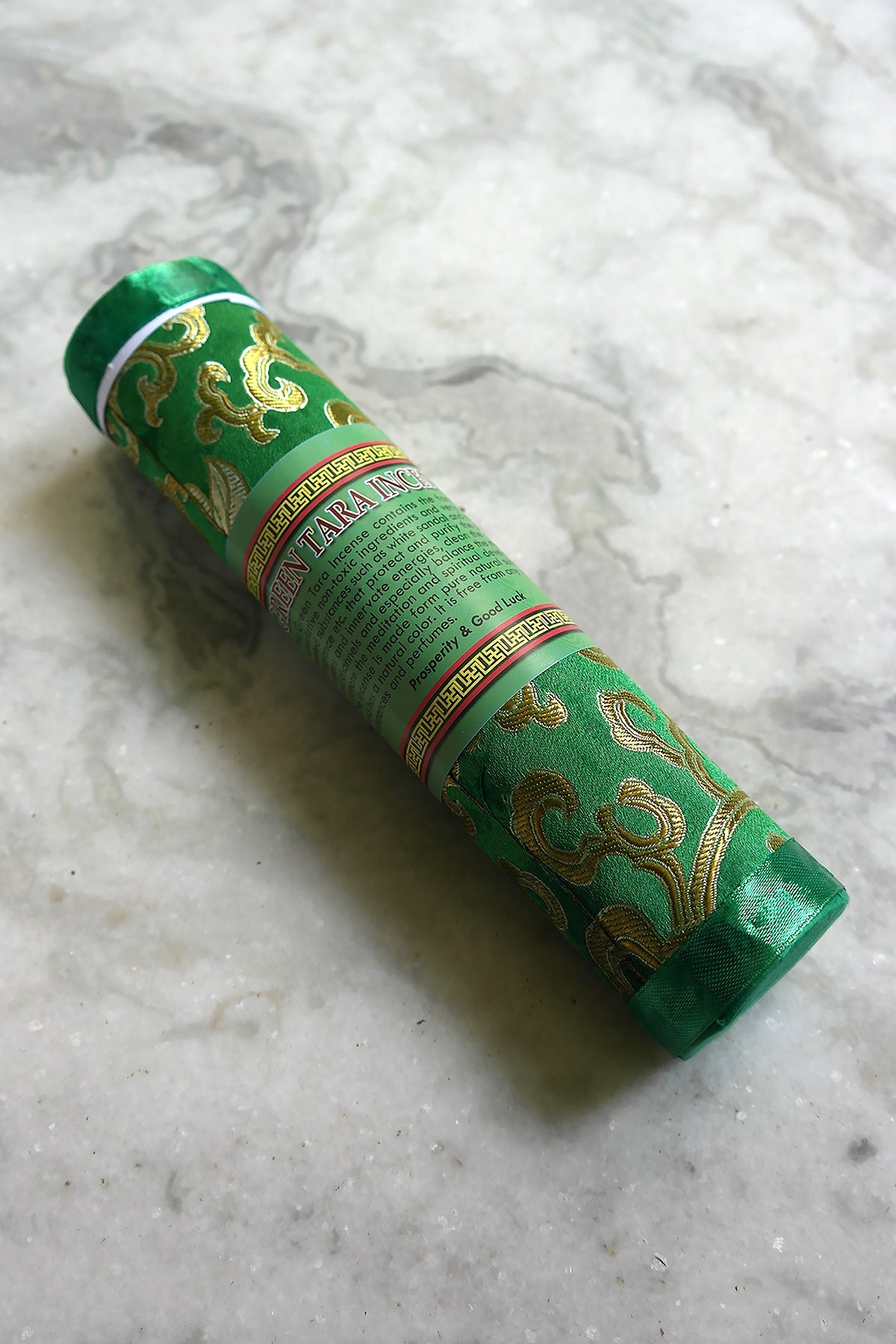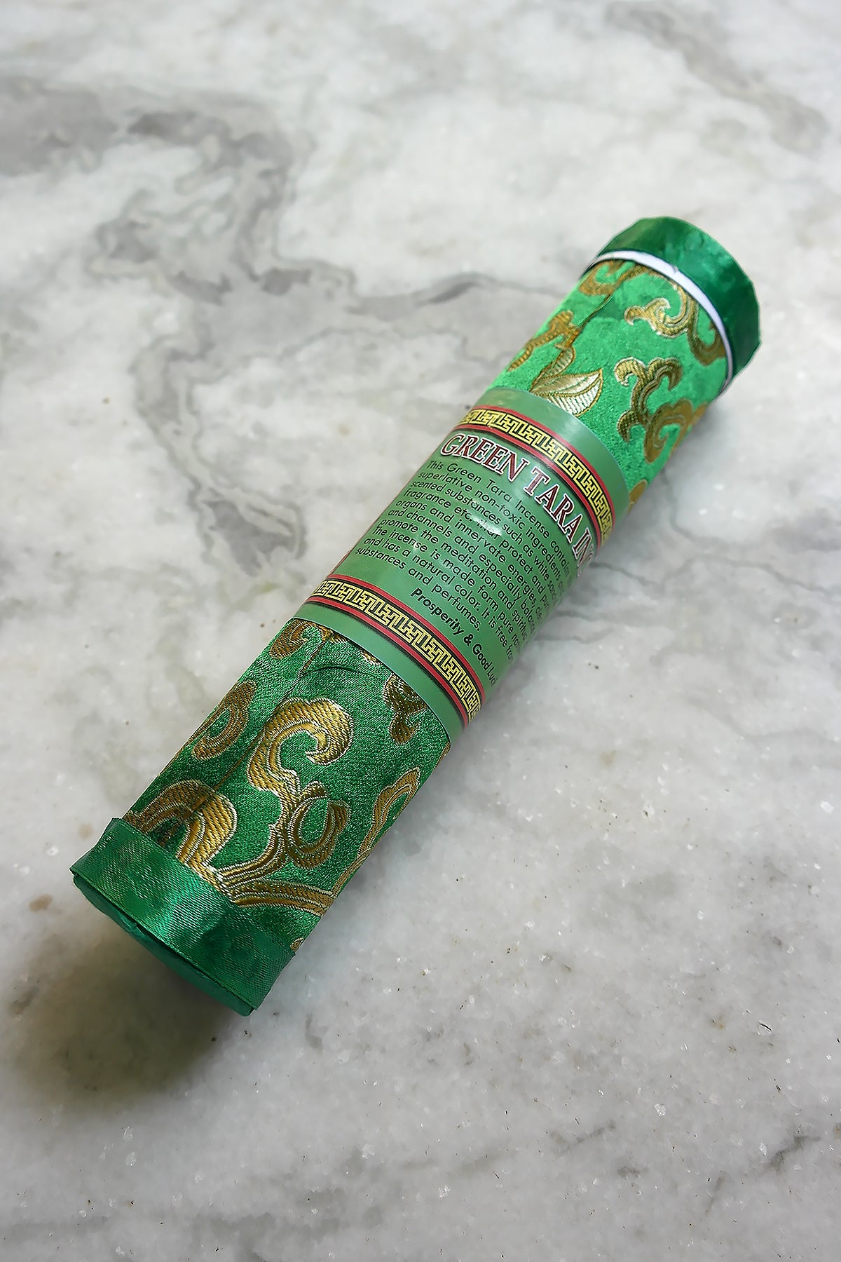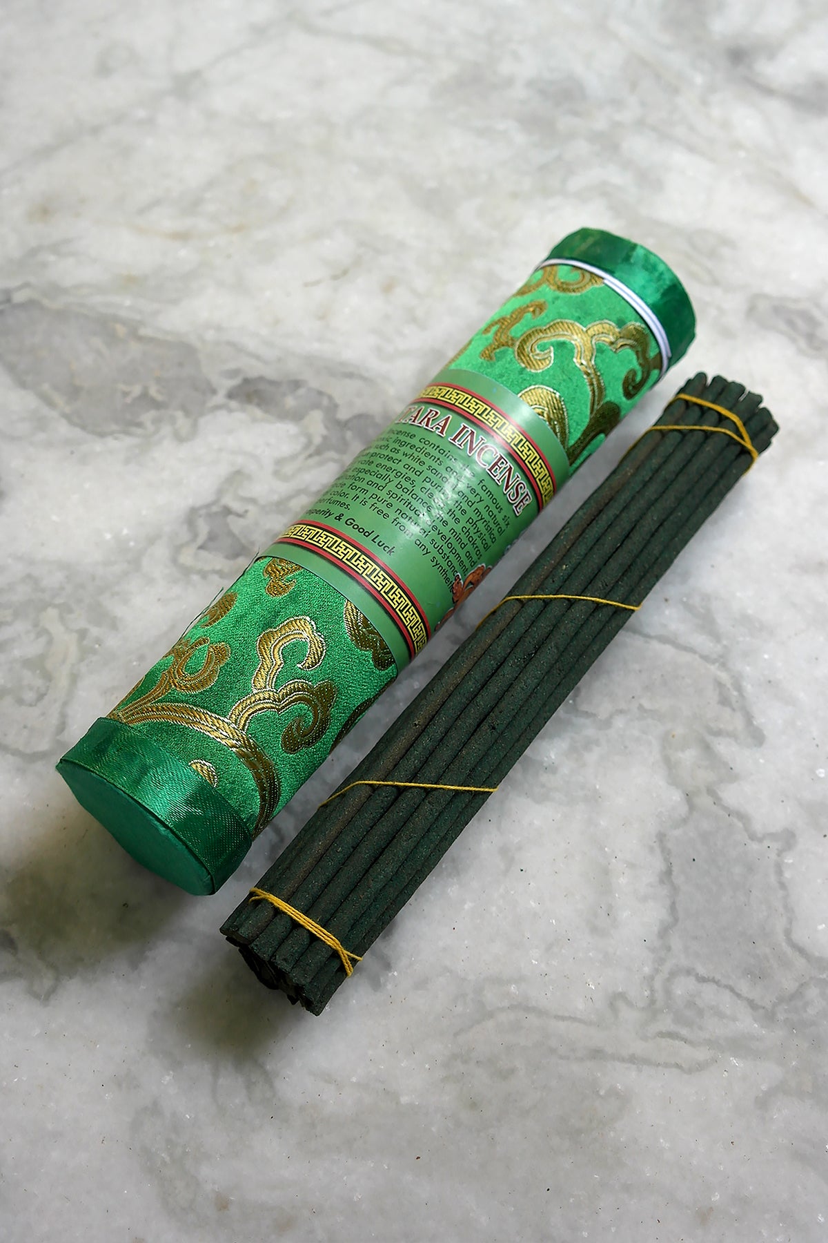 The Green Tara Incense boasts a noteworthy composition of six preeminent non-toxic ingredients, along with various natural and fragrant substances, including the likes of white sandal and Myristica fragrance, that offer protective and purifying benefits to the physical organs and activate the innate energies. The incense has a distinctive ability to cleanse the chakras and channels, all while promoting the much-needed balance of the mind, thus fostering a conducive environment for spiritual development and meditation practices. It is worth noting that this incense is crafted from pure natural substances, which is further attested by its natural color, and it is entirely devoid of any synthetic substances or perfumes.