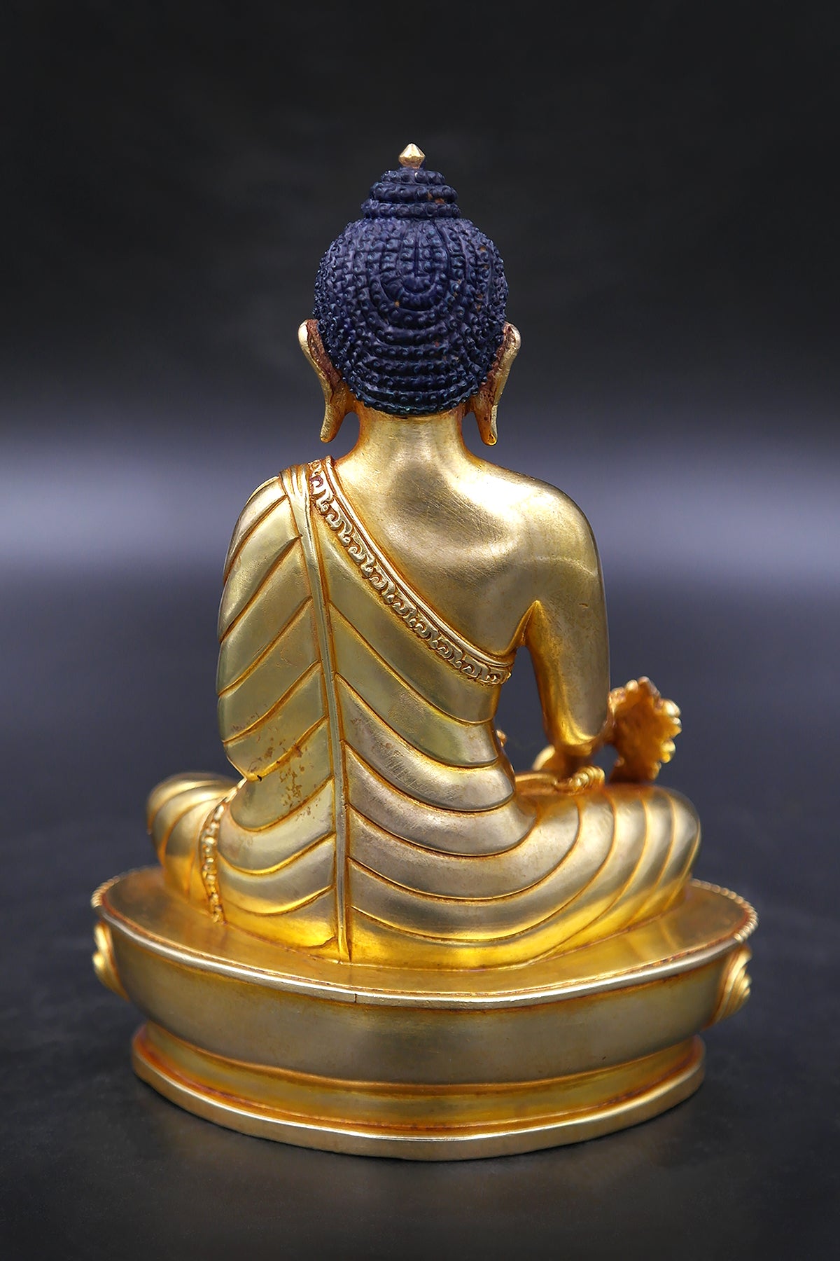 The Medication Buddha is portrayed in compositions having blue skin but this is gold plated statue, the right hand is held looking lower with fingers reached out toward the ground, palm confronting outward toward the watcher, a bowl of herbs rests in the left hand upon the lap. It is accepted by the Tibetans that the Buddha was liable for conveying the information on medication to individuals of the world, and as a matter of fact the right hand confronting outward connotes "conceding a help" to humanity. This is a typical hand signal among both Buddhist and Hindu sculptures. The Medication Buddha is loved by those looking for wellbeing, and is all the more normally tracked down in the Buddhist sanctuaries and networks of Nepal and Tibet.