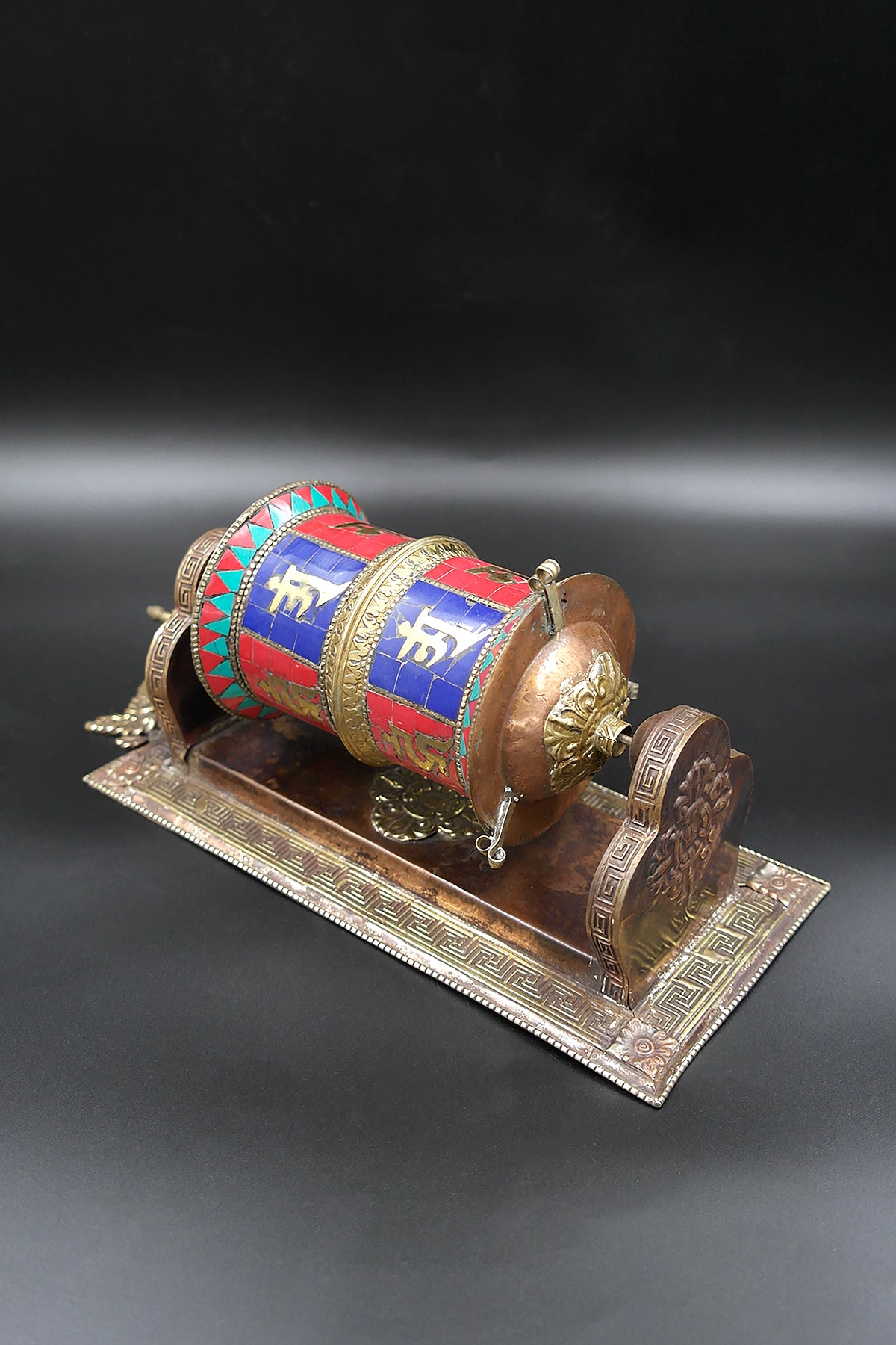 Om mane peme hum mantra inlaid with Gemstone wall mount Prayer Wheel