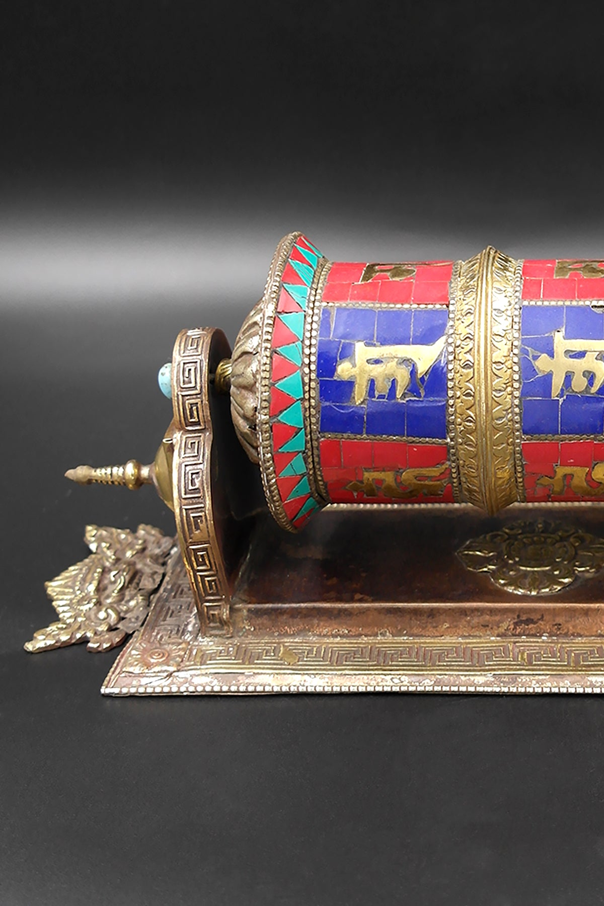 Spin it round and round and good luck will come! The story of the mysterious Tibetan prayer wheel. This beautiful Tibetan prayer wheel is not just a decoration. It has a deep meaning that when you turn it, your good thoughts and wishes will lead to world peace. These prayer wheels are mostly made of brass and are beautifully engraved with the famous sacred mantra, Om Mani Padme Hum and inside the wheel are scrolls filled with this sacred Mani mantra.