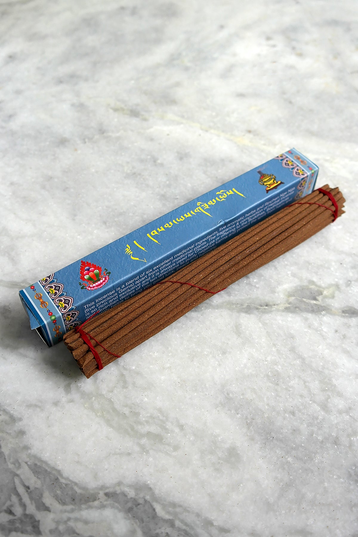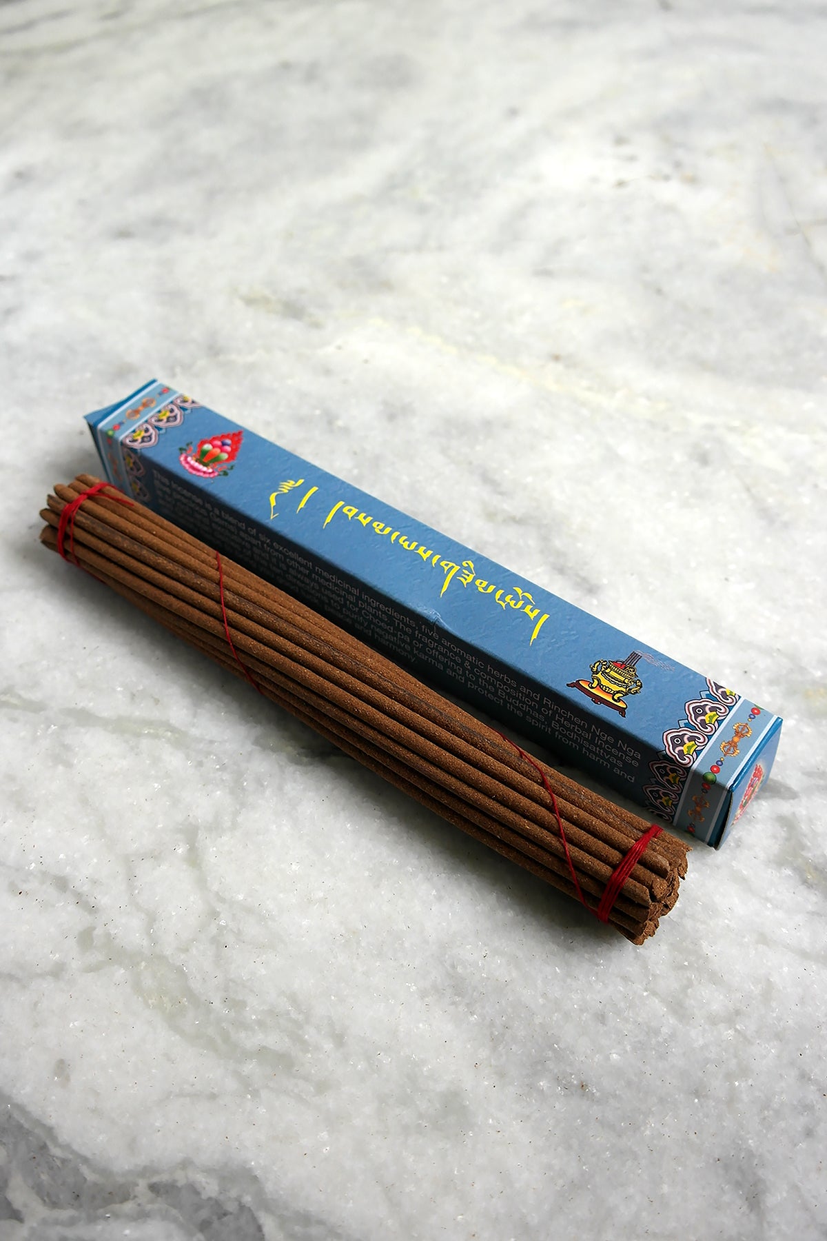 This is a Samye Incense - Tibetan Herbal Incense Sticks are a natural and holistic way to improve your overall health and well-being. This incense is a blend of six excellent medicinal ingredients, five aromatic herbs and Rinchen Nge Nga(five precious Gems) apart from other medicinal plants. The fragrance and composition of Herbal Incense is so rice and exclusive and it is always used for Choed-pa or offering to the Buddha and Guardian deities of the ten directions of purity negative karma and protect the spirit from harm and ultimately helps to bring you good luck, peace and harmony.