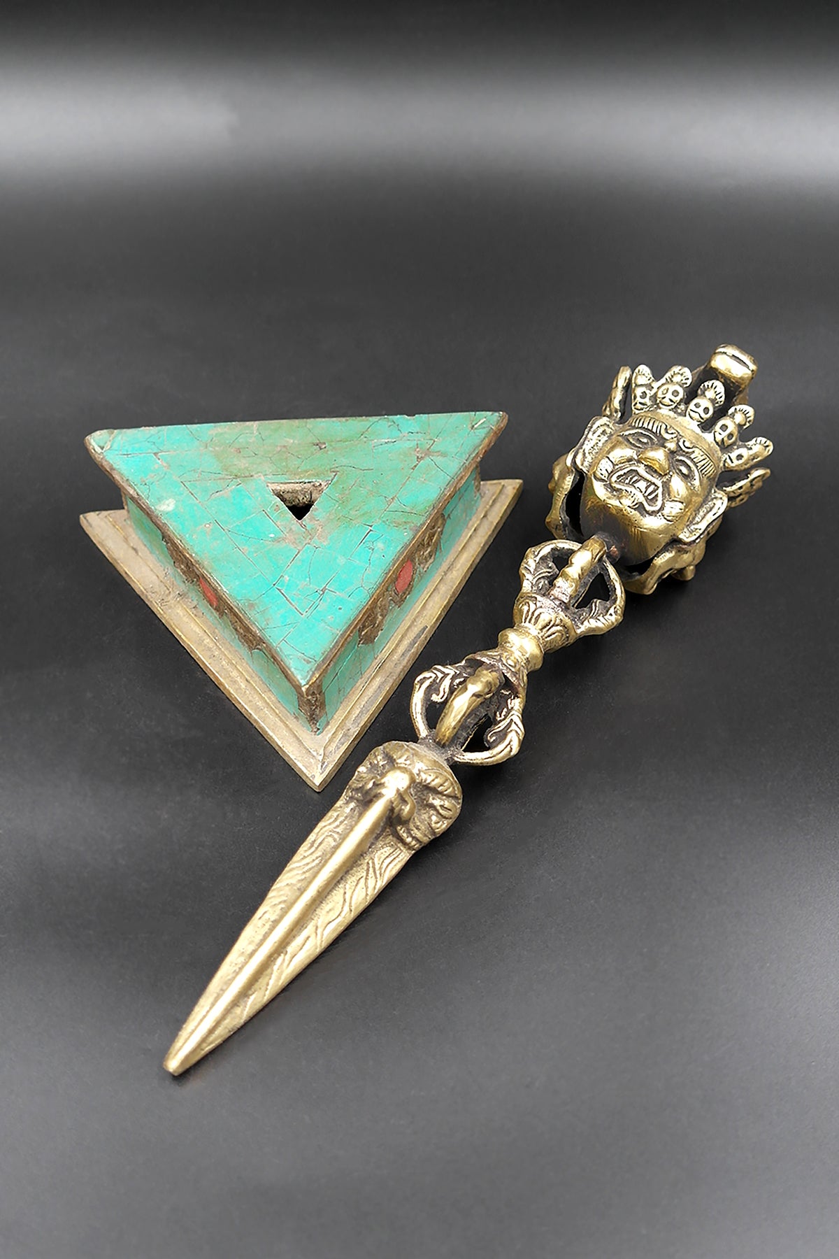 A very important and wonderful ritual tool in Tibetan Buddhism. It is a sacred tool that will ward off negative energy and bring in positive energy. This Phurba has a unique shape with three sides/blades which has a profound meaning of eliminating the three poisons: ignorance, greed, and anger.