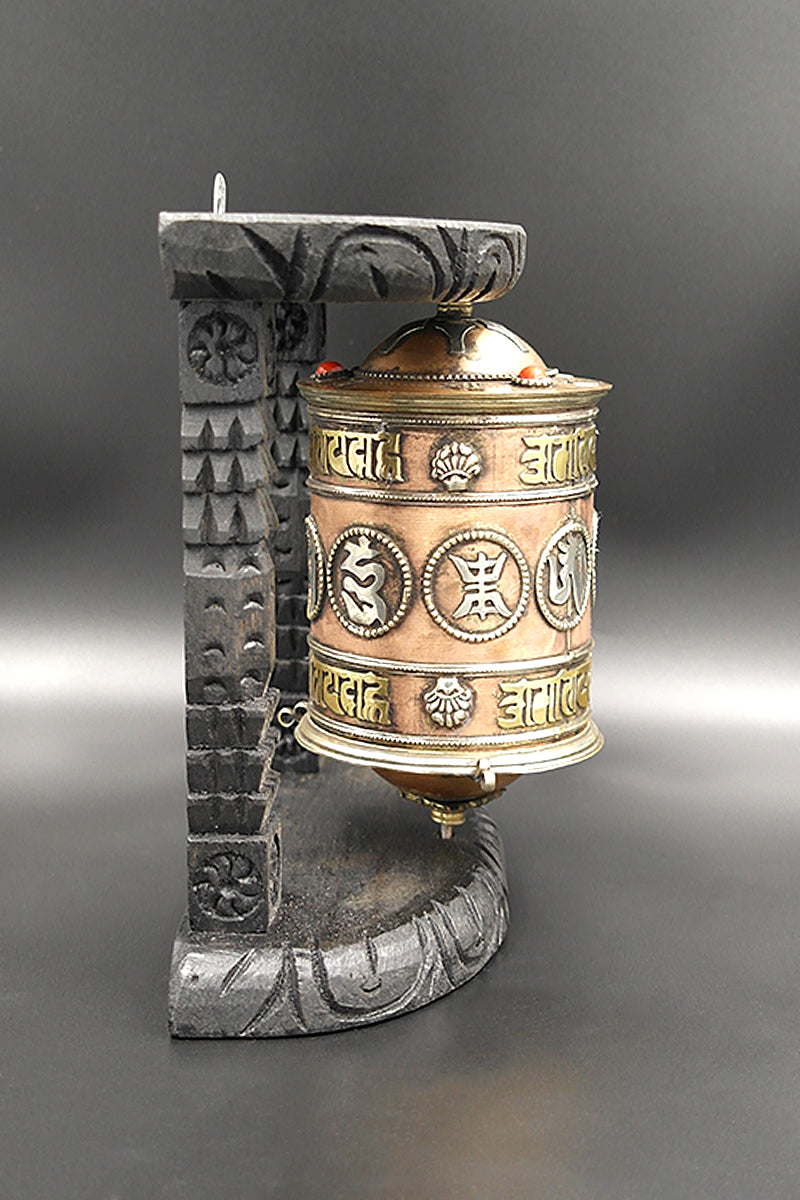 Normally, in the prayer wheel, the roll of sacred Buddhist mantras kept inside and its contains scrolls printed with hundreds of mantras in succession. When you spin it clockwise with devotion and compassion to send your deepest intentions into the universe.